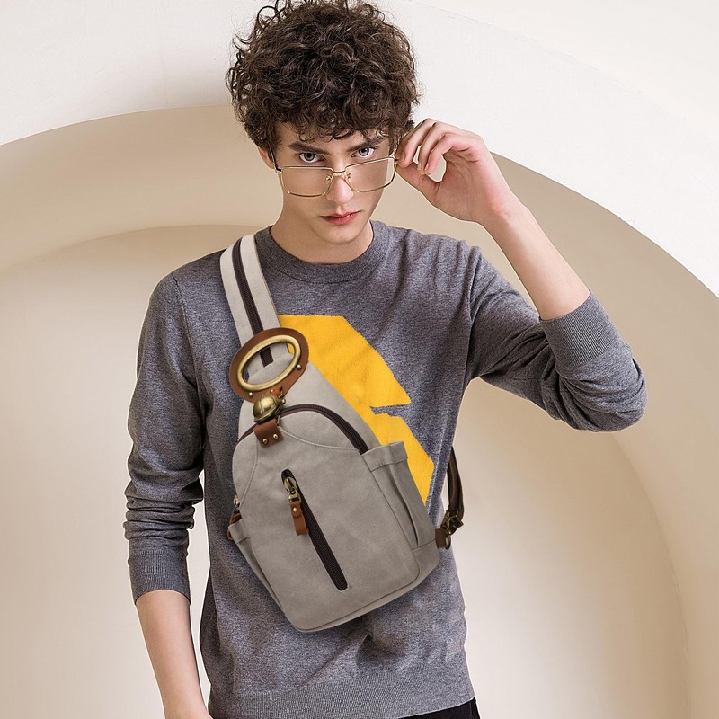 - 【Occasions】Whether travel, hiking, cycling, camping, bike riding, walking, gym or commuting,this retro stylish canvas sling bag will keep your hands free and belongings secure.It's perfect for business, office and daily use