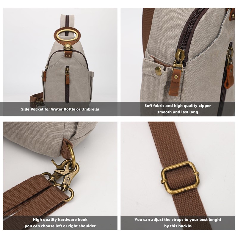 - 【Multiple Uses】With the adjustable and zippered straps, this retro canvas sling bag can be used perfectly as a small backpack, you can also wear it as a chest bag, a crossbody bag, etc