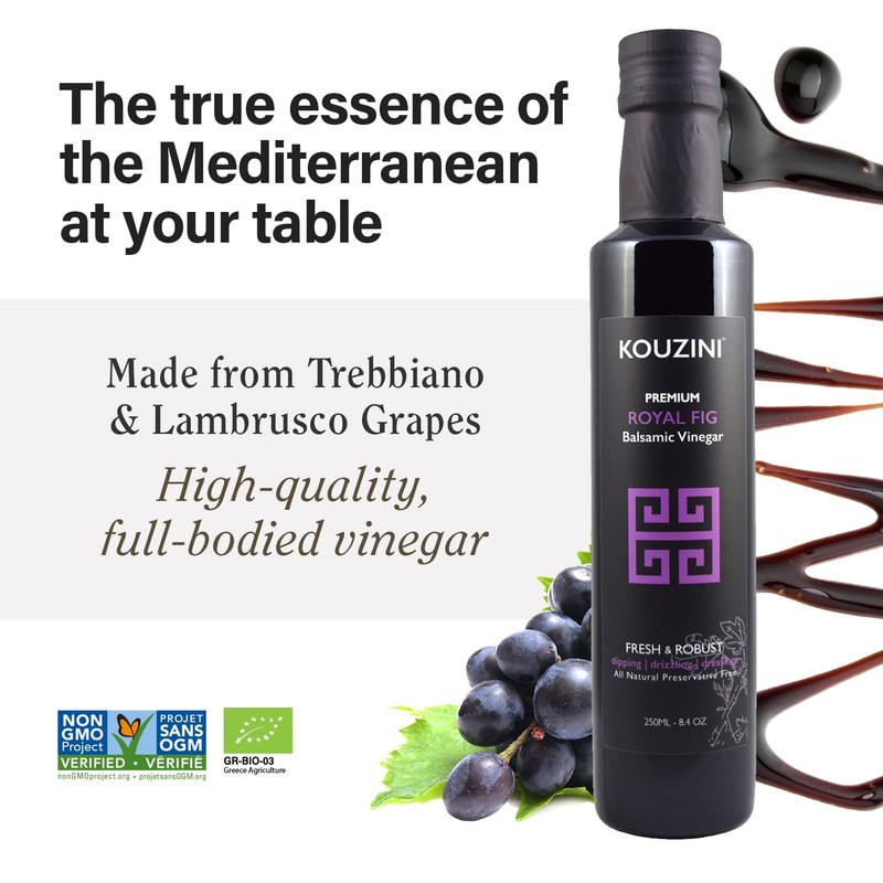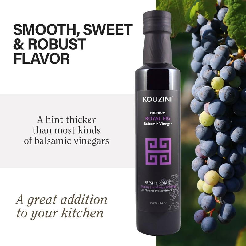 Kouzini Ultra Premium Royal Fig Balsamic Vinegar, Aged Balsamic Vinegars from Modena, Italy, Premium, Smooth & Full-Bodied Flavor, 250ml Bottle