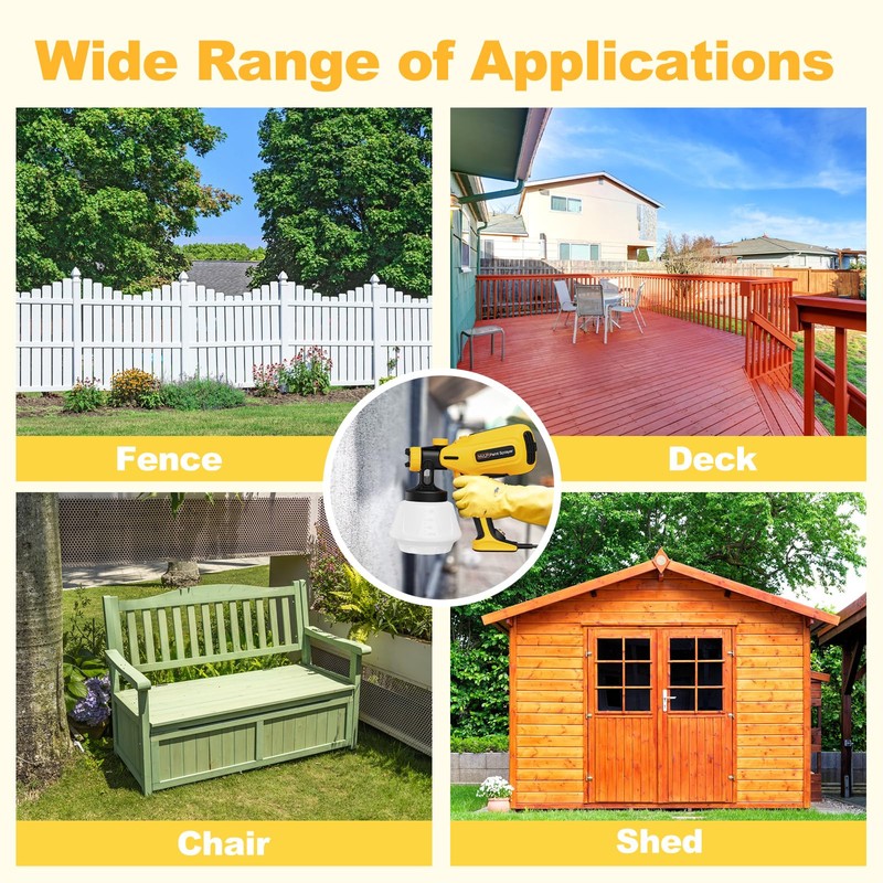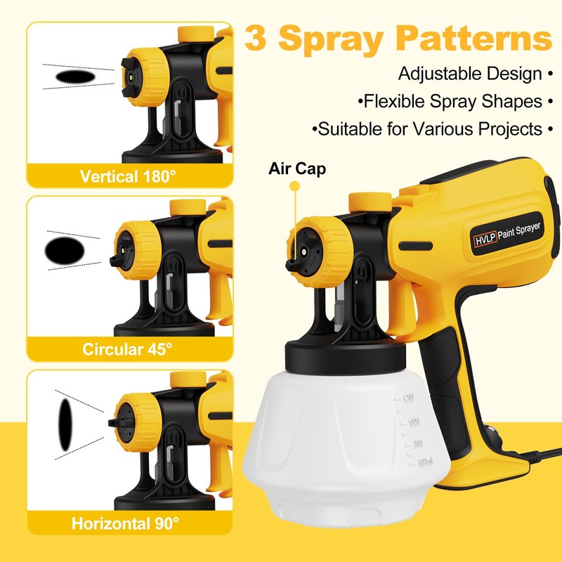 • 4 Sizes of Nozzles and 3 Spray PatternsKOVDON 700W paint sprayer comes with 4 sizes of nozzles (1 mm, 1.5 mm, 2 mm, 3.0 mm), which can be adjusted into 3 spray shapes (horizontal, vertical and circular). Suitable for most painting projects such as furniture, walls, doors, garden tables and chairs, etc