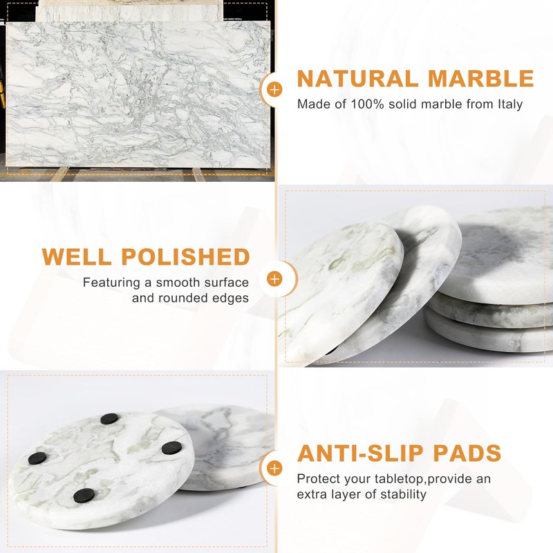 - 【Easy to Clean】The coasters are suitable for all kinds of cups, hot and cold drinks, simply rinse with water if it gets dirty. The coasters are cut from high quality marble, carefully carved and polished, thick and sturdy to ensure durability