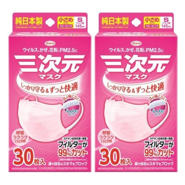 Kowa Three-Dimensional Mask, Small, Baby Pink, 30 Pieces x 2 Packs