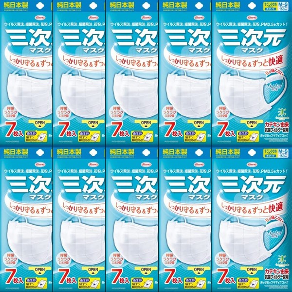 KOWA 三次元マスク すこし小さめMSサイズ ホワイト 7枚入×10個セット