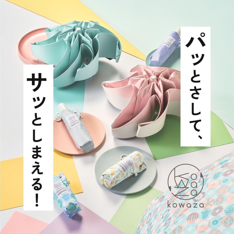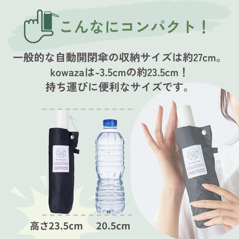 kowaza 30287 30287 Folding Umbrella, Auto Open/Close, 100% Light Blocking, Heat Shield, UV Protection, Sun Parasol, For Both Sun and Rain, Covaza, Solid, Easy to Fold, Urawaza, Ribs, 19.7 inches (50