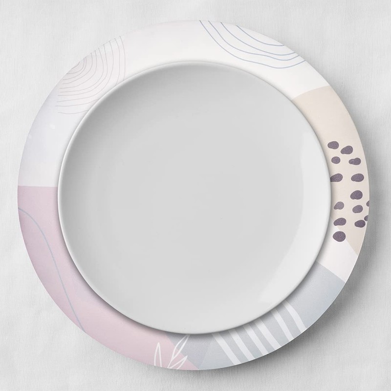 - A STURDY BASE FOR YOUR DINNERWARE: Safely hold your glass plates, ceramic, porcelain plates, or paper party plates, with our durable acrylic charger plates. Crafted with high-quality acrylic with an exclusive abstract brushstroke design, brought to life with vivid detail and vibrant color finish. Each plate charger is made to resist breakage, chips, and cracks while catching food and spills in style. With a commercial quality, purchase in bulk for larger catered events.