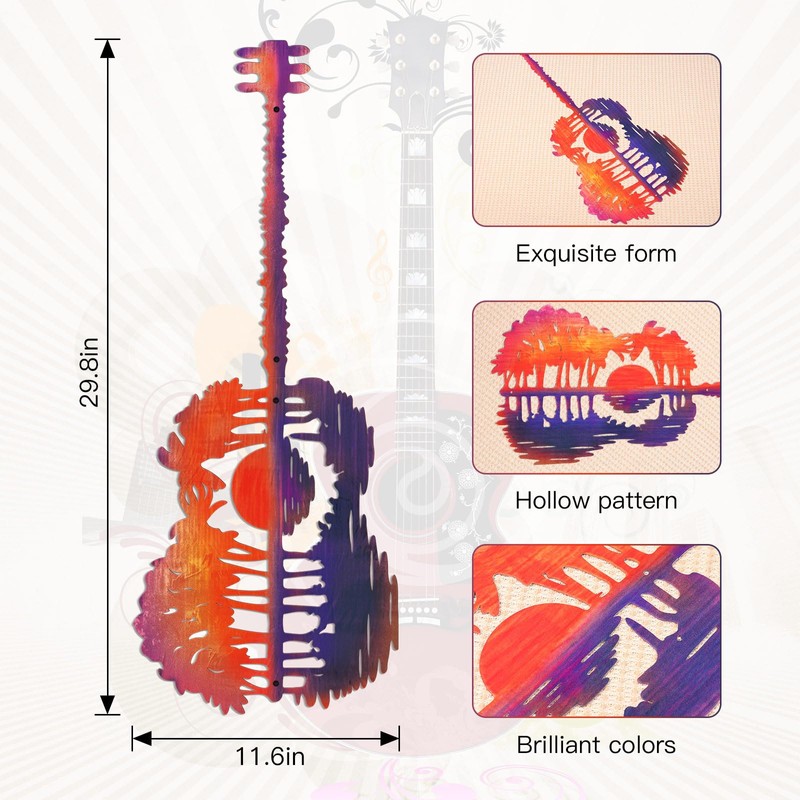 - Unique Design: This music wall art decor equipped with the pattern of sunset, and the reflected water surface and the scenery on the shore skillfully form the pattern of guitar. Whether it is placed as an ornament in a music studio or hung on the bedroom wall, it can add a strong artistic atmosphere and musical atmosphere to the environment.