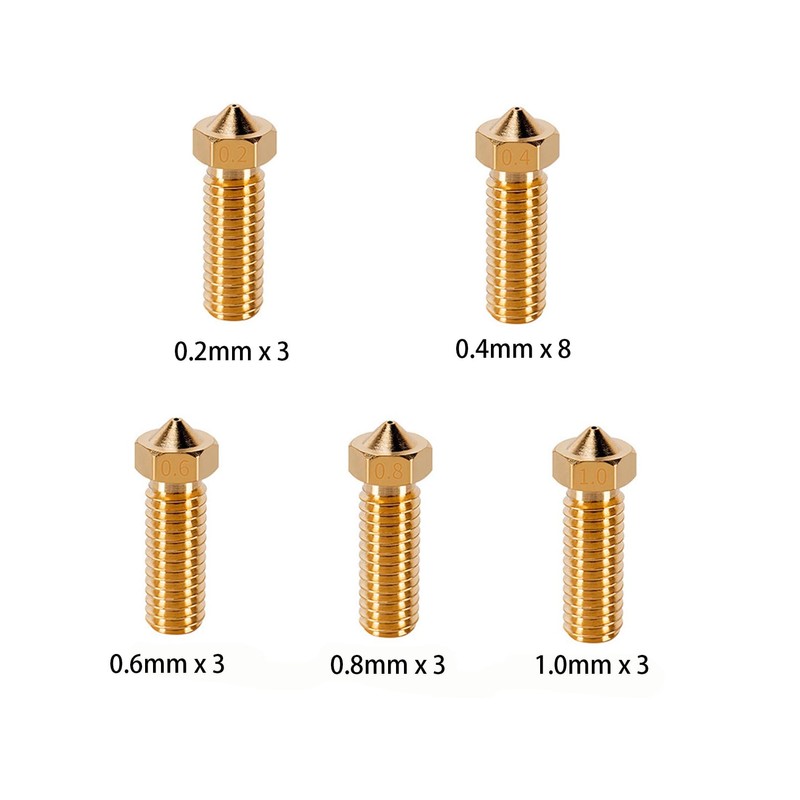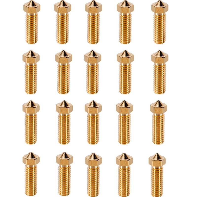 - Package Included This 20 piece nozzle set includes 8 brass nozzles with 0.4mm and 3 brass nozzles with 0.2mm, 0.6mm, 0.8mm and 1.0mm.