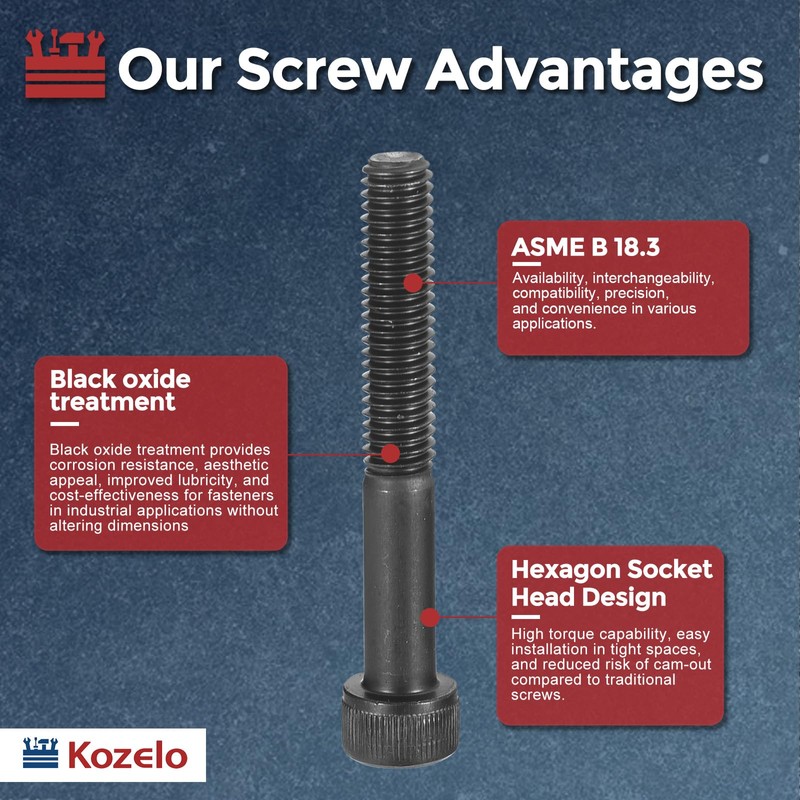 Kozelo 25pcs Socket Head Cap Screws - [M6-1 x 45mm] Alloy Steel Black Oxide Grade 12.9 Internal Hex Screw for 3D Printer Furniture Industrial Use, Black