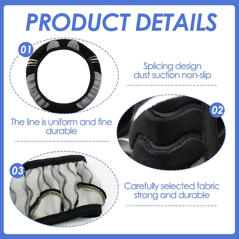 - Easy to install: The steering wheel cover is very easy to install and remove, just align the steering wheel cover to the top of the steering wheel, pull it firmly from the top to the side, and then pull it down from the sides. Turn and adjust the steering wheel cover until it fits perfectly on the steering wheel, just perform the operation for a relaxing experience