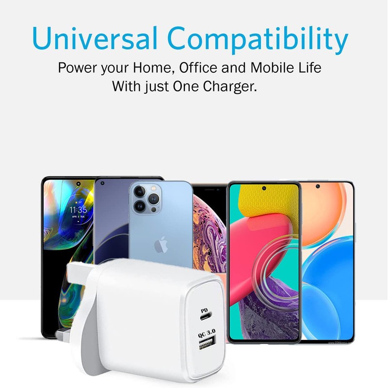 - [Versatile Charger]: This charger has multiple ports which allows you to charge two devices at the same time. The C to C port can provide full-speed charging by charging your phone from 0% to 50% in 30 minutes.