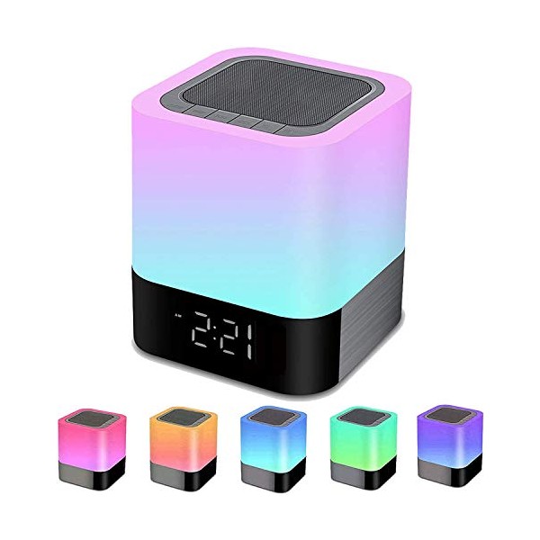 KPR Night Lights Bluetooth Speaker, Alarm Clock Bluetooth Speaker Touch Sensor Bedside Lamp Dimmable Multi-Color Changing Bedside Lamp, MP3 Player, Wireless Speaker with Lights