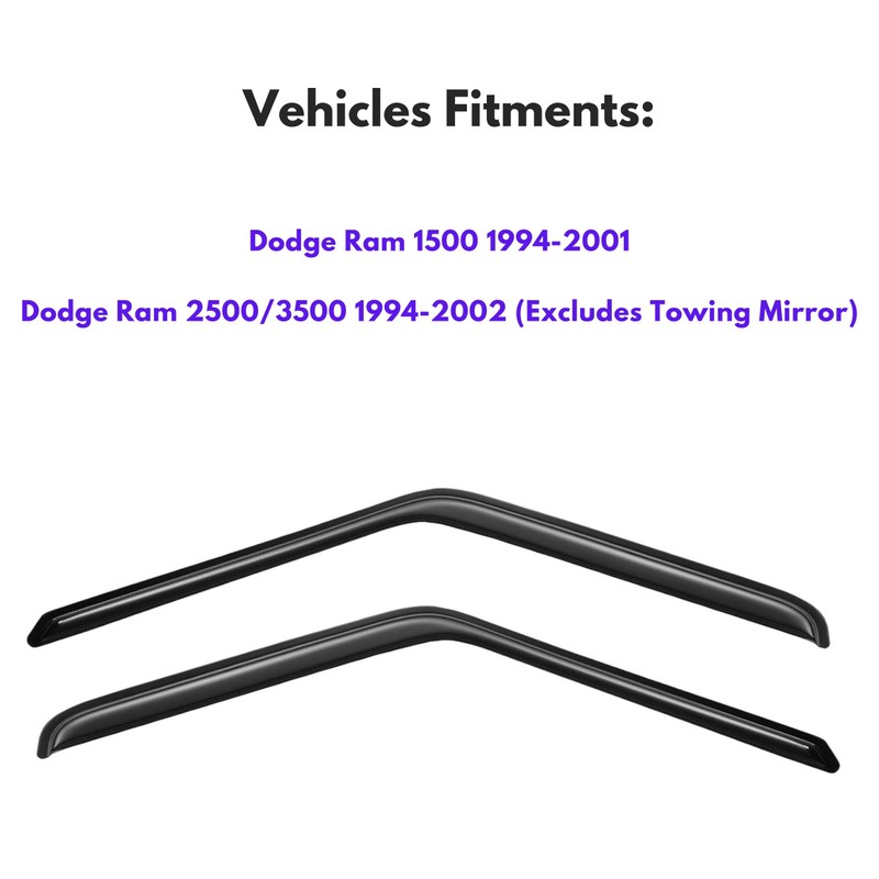 - 【Perfect Fit】KPY window visors rain guards vent deflectors compatible with Dodge Ram 1500 1994-2001 & Dodge Ram 2500/3500 1994-2002 (Excludes Towing Mirror)