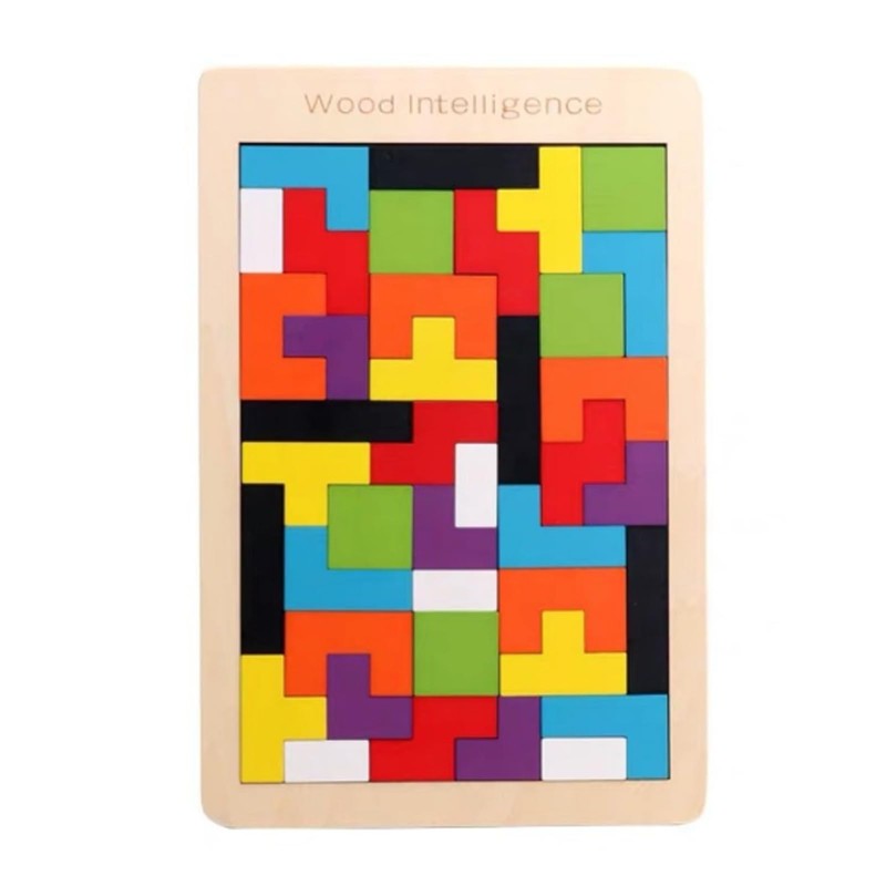 【木製テトリスパズル】本製品は老若男女を問わずにお使いいただけます。指先を使ってパズルを枠にはめたり色々なピースを合わせて形を作る遊びができます。