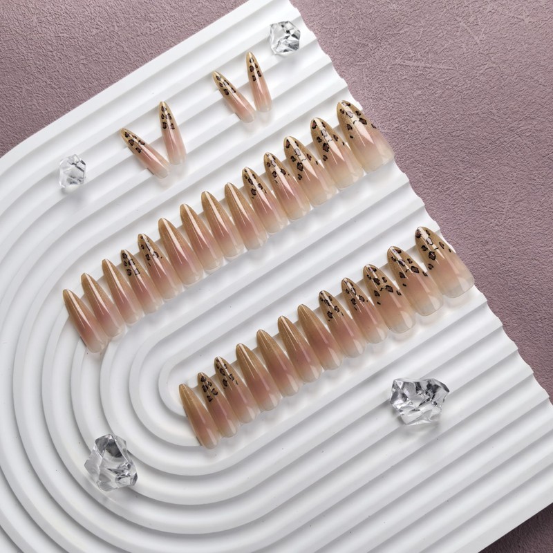 - Leopard French Nails Glue on in Minutes: Skip the salon and achieve a striking leopard long almond nails glue on at home. Designed for quick application, these french tip long nails press ons deliver bold, eye-catching results in just minutes.Perfect for parties, events, or everyday sparkle