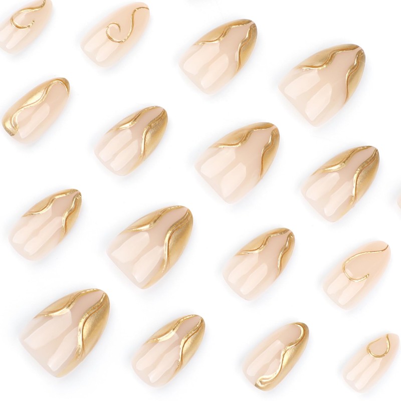 - Widely Used:KQueenest gold swirl acrylic nails press ons really suitable for dance parties, weekend trips, weddings, parties, valentine's day, Christmas, Halloween. These gold french press on nails oval are also a beautiful gift for women and girls