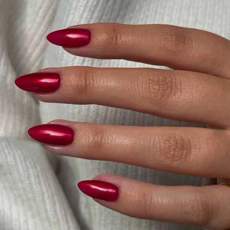 KQueenest Chrome Press On Nails - Glitzer Rot Nägel zum Aufkleben Mittel Mandel, Sparkle Bling Fake Nails Künstliche Fingernägel zum aufkleben, Glasiert Acryl Nägel für Frauen, 24 Stück