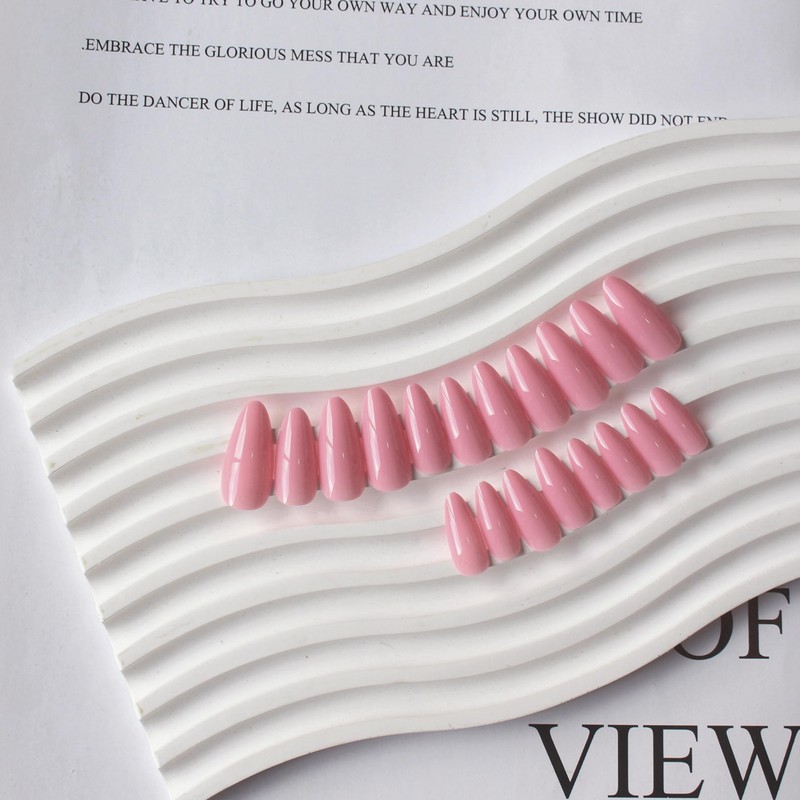 - Complete Acrylic Nails Press on: Each set includes 24 pieces medium short almond nails stick on, 1 sheet adhesive tabs, a mini file, and a cuticle stick. Easy to trim and shape, our almond fake nails pink're great for all nail sizes and perfect as a women's gift