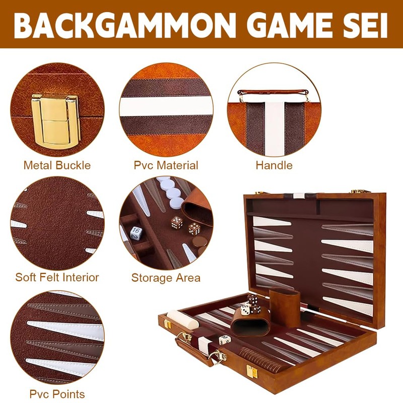 - ✔️【Classic Backgammon Game】This travel backgammon set is a strategic mind game that challenges players to think strategically, enhancing their problem-solving skills and strategic thinking.Back gammon board gameset is a great gift for all levels of players.