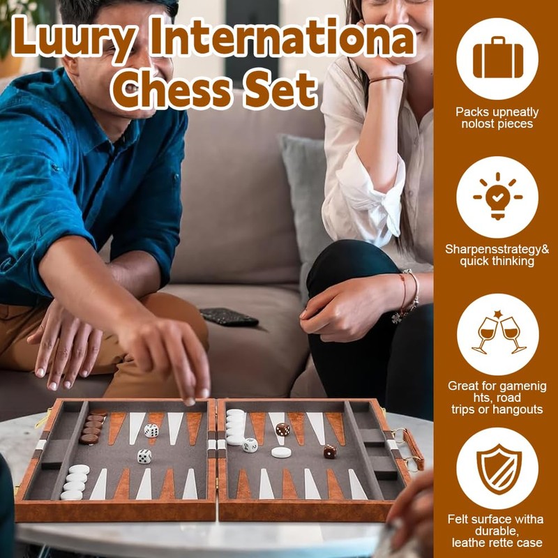 - ✔️【Ideal Gift】The backgammon set is a classic strategy board game.It is suitable for players of all ages and can be enjoyed with family and friends, providing a fun and engaging way to stimulate the mind. Ideal gift for family, friends, and loved ones, offering hours of entertainment and fun for all.