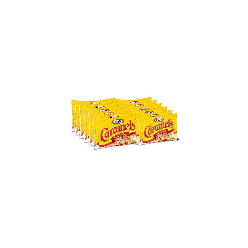 - Twelve 340g bags of Kraft Caramel Individually Wrapped Candy