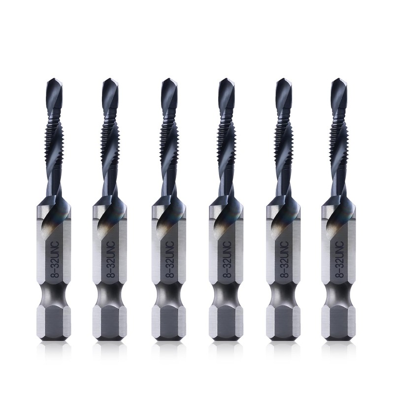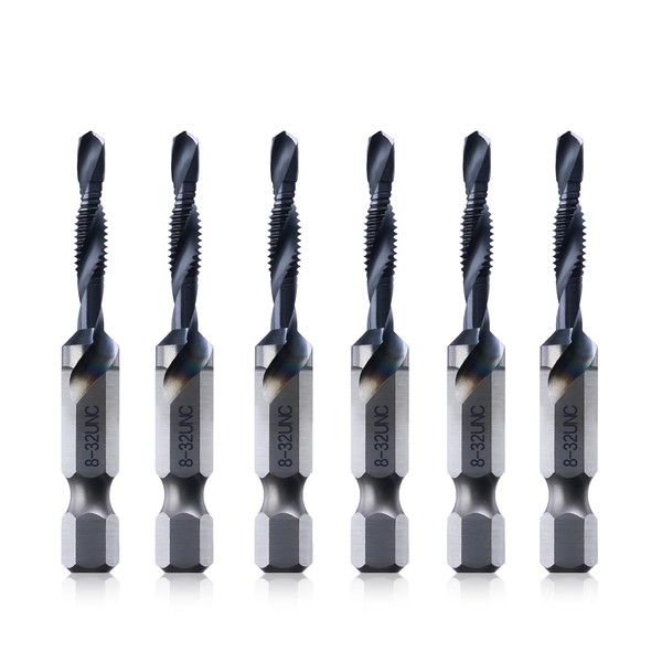 Kraftek 8-32NC Combination Drill and Tap Bit Set, Ultra TiAlN Coating M2 Drill Tap Set for One-Step Drilling, Tapping, and Deburring, 8-32NC 6pack