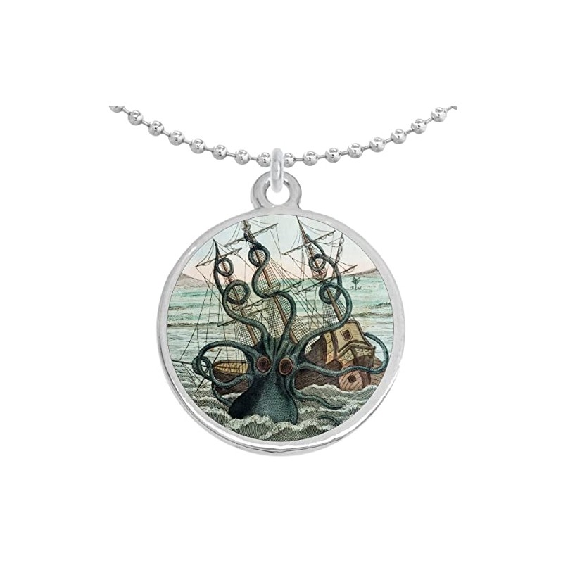 Kraken Octopus Ship Round Pendant Necklace