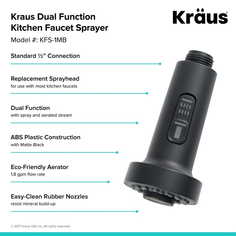 Kraus Dual Function Kitchen Faucet Sprayer in Matte Black