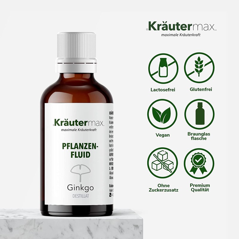 Kräutermax Ginkgo Tree plant fluids are made using a traditional distillation process. The production of the Kräutermax Ginkgo cut fluid is based on three essential levels. Namely maceration and fermentation of the ginkgo plant, water vapour distillation into a template of pure alcohol and ash of the ginkgo powder organic residue (the slemp). This art of manufacture had its flowering period in the Middle Ages and has therefore enjoyed great popularity for a long time.