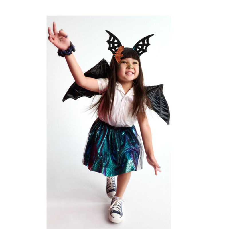 - 💀Assortment: Packs of 3 KRE Halloween Glitter bats Clips assorted among black, orange, and purple.