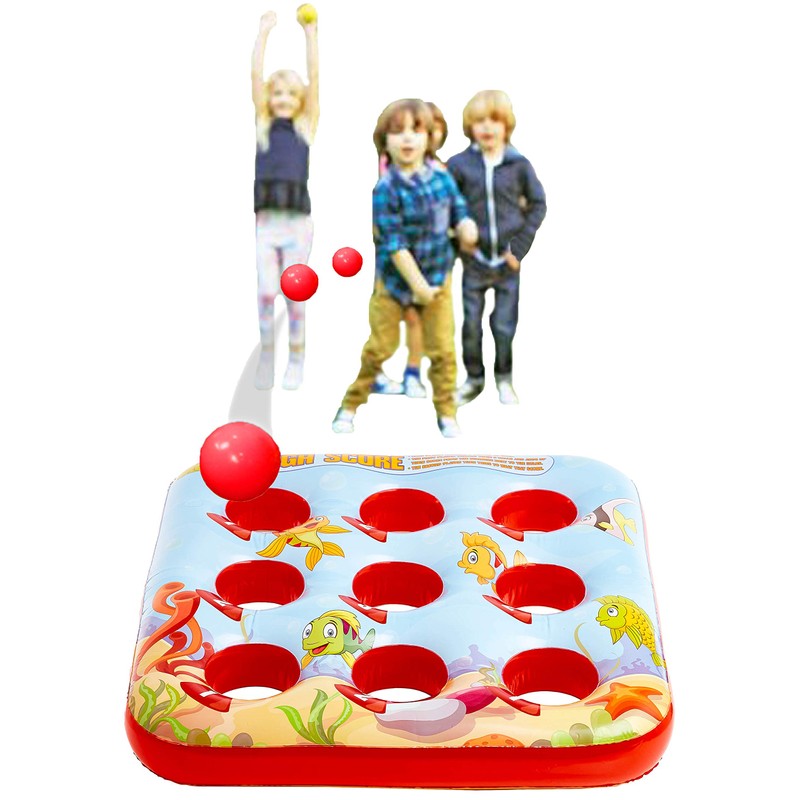 - 2 IN ONE GAMES: With our inflatable games for children you can play not one, but two games: ‘Three in a Row’ and ‘High Score’. With ‘Three in a Row’ each player choose a ball’s colour and throws at the targets until someone gets three in a row in any direction. With ‘High Score’ each player throws their three balls and sums their score from the number next to the holes; the second player will need to beat that score to win