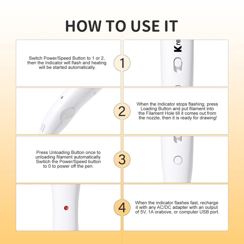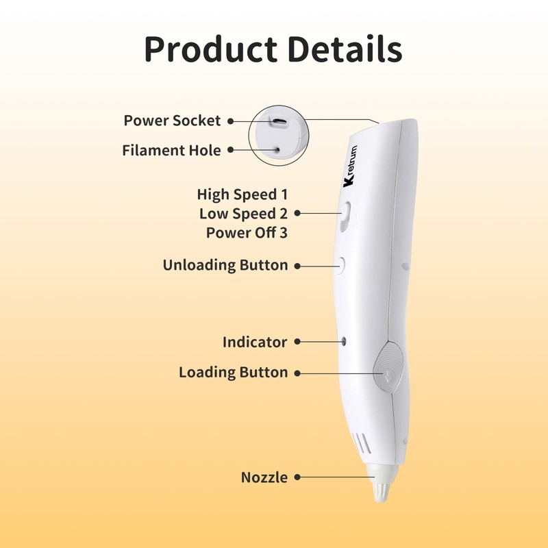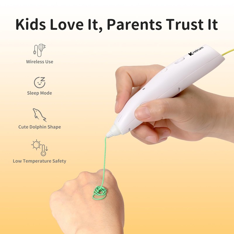 - Low Temperature 3D Printing Pen Kit : This 3D printing pen kit comes with a low-temperature 3D printing pen that works at a low temperature and comes with two finger sleeve. So it is safer to use.