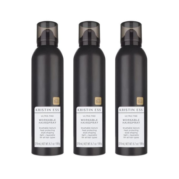 Kristin Ess Hair Ultra Fine Workable Hairspray with Heat Protectant - Buildable + Flexible Hold, Style Control, Brushable Texture Hair Spray, Hair Styling Product, 6.7 oz. (Pack of 3)