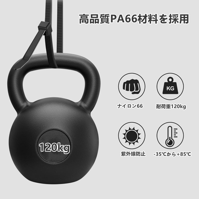 - 【Sturdy and Durable】: This cable tie is made of high quality PA66 material with a thickness of 2.5mm and width of 12mm, which has a maximum loop tensile strength of about 120kg (260N), making it stronger and more durable than other cable ties on the market. Additionally, triple serration increases tensile strength by 15% to 30%