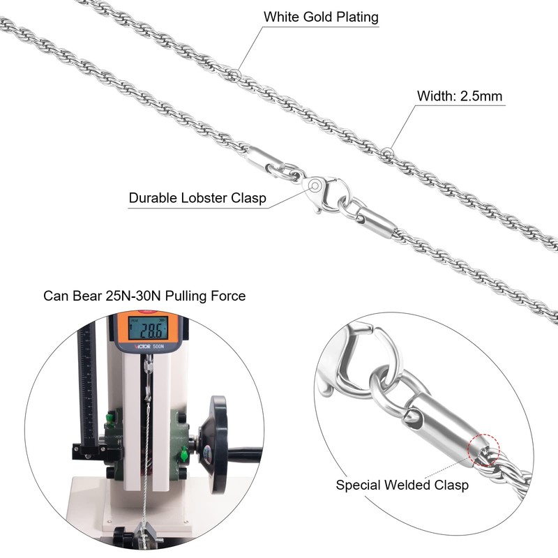- The perfect gift: Classic rope chain design will never be outdated. You can wear this rope necklace alone or combine it with a pendant. Whether you are looking for a birthday/Christmas gift for your wife/girlfriend, or for your husband/boyfriend - you have found it