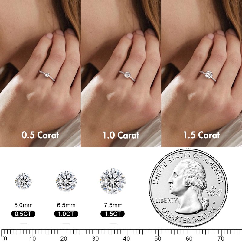 KRKC&CO Engagement Ring Women's Moissanite Rings, 0.5/1/1.5 Carat Diamond Solitaire Ring, VVS1 D Colour, 925 Silver White Gold Wedding Ring, Engagement Anniversary Gift for Women, Moissanite