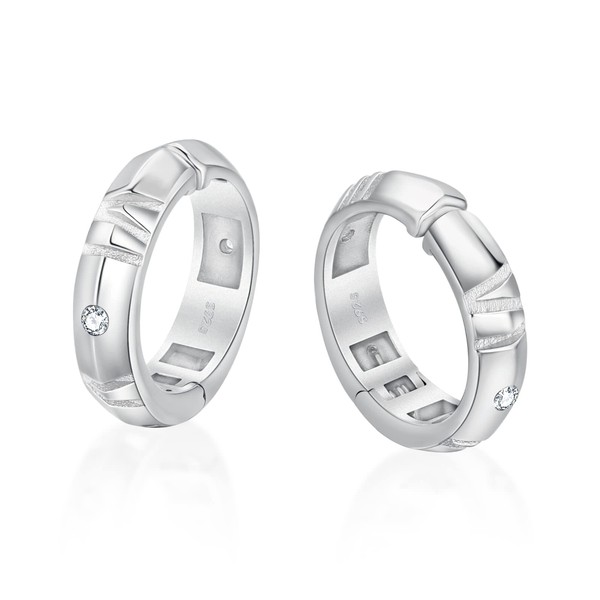 KRKC & CO Men's Fake Earrings, 925 Silver, Ear Cuff, 0.6 inches (15 mm), Black, Hoop Earrings, Non-Hole Earrings, Binaural/Single Ear, Black, Roman Numerals, Simple, Hypoallergenic Metal, Popular,