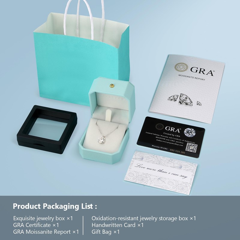- 【Perfect Gifts】The perfect gift to express love or reward yourself on birthday, anniversary, Mother's Day, Christmas, Valentine's Day, Thanksgiving, weddings ect..It come in an exquisite box with GRA Certification & Handwritten Card & Gift Bag & 4.0CT (10mm) Moissanite Pendant.