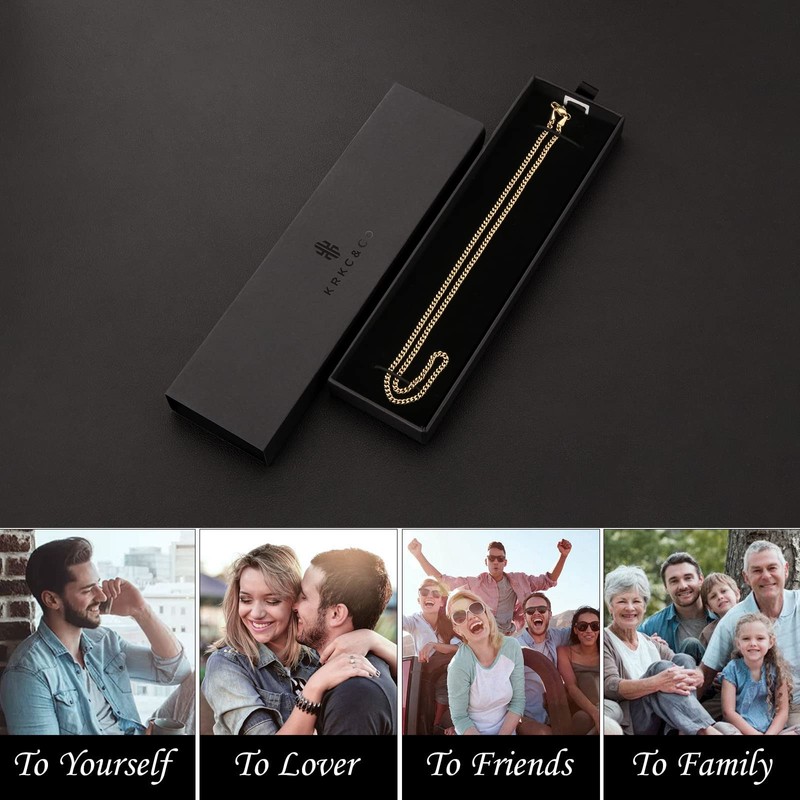 - 【Flat Diamond-Cut Gold Chain】KRKC Men's Cuban Link Chain features a flat diamond-cut bevel for a more reflective look than other thin chain necklace. Finely polished to ensure a bright, sparkling and flawless shine with an amazingly smooth touch. And it's a popular style that won't be swayed by fashion. Wear it to make you stand out from the crowd.