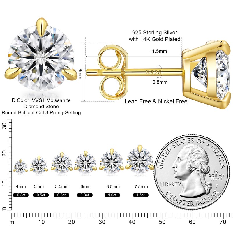 - 【Hypoallergenic, safe for all skin types】KRKRLIFE lead-free nickel-free moissanite earrings studs are made of 925 sterling silver in 14K gold. Hypoallergenic materials are safe for sensitive ears. If you have sensitive skin, you will love our KRKCLIFE S925 gold earrings