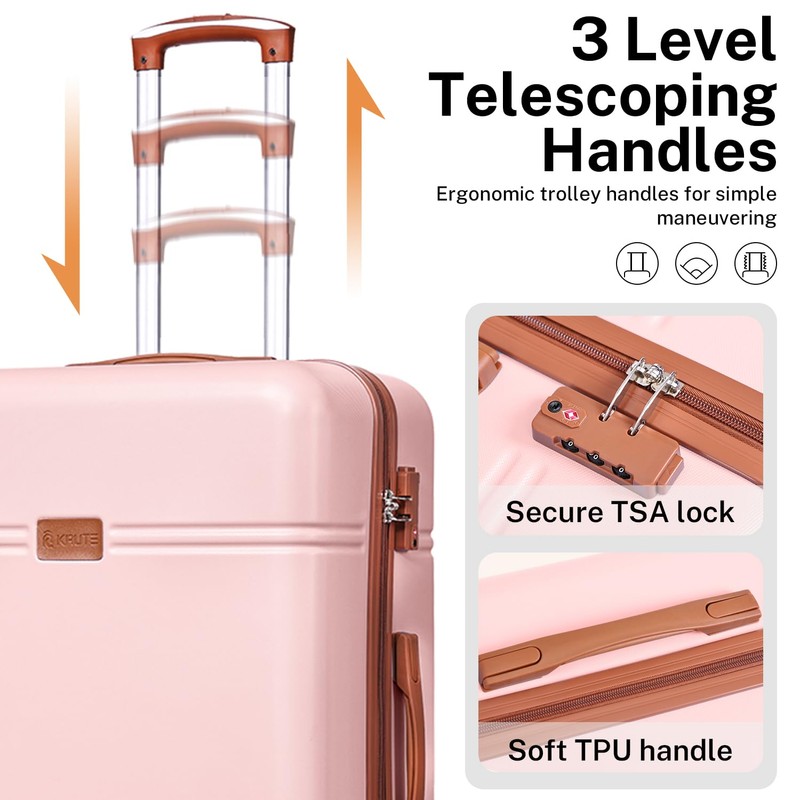 Krute Checked Luggage 24 inch Suitcases with Wheels TSA Approved PC+ABS Lightweight Hard Side Suitcase