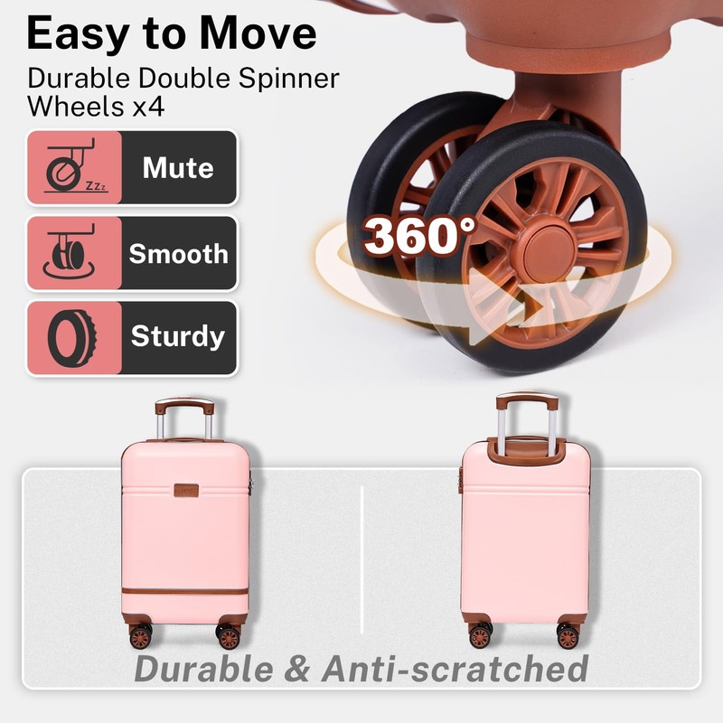 - 【360° Double Spinner Wheels】 The suitcases with wheels which can rotate in different directions in all kinds of road conditions for smooth and silent movement, and it is topped with an easy to catch handle and a flexible (three-part) metal handle, ensuring that the suit case can be moved easily and comfortably.