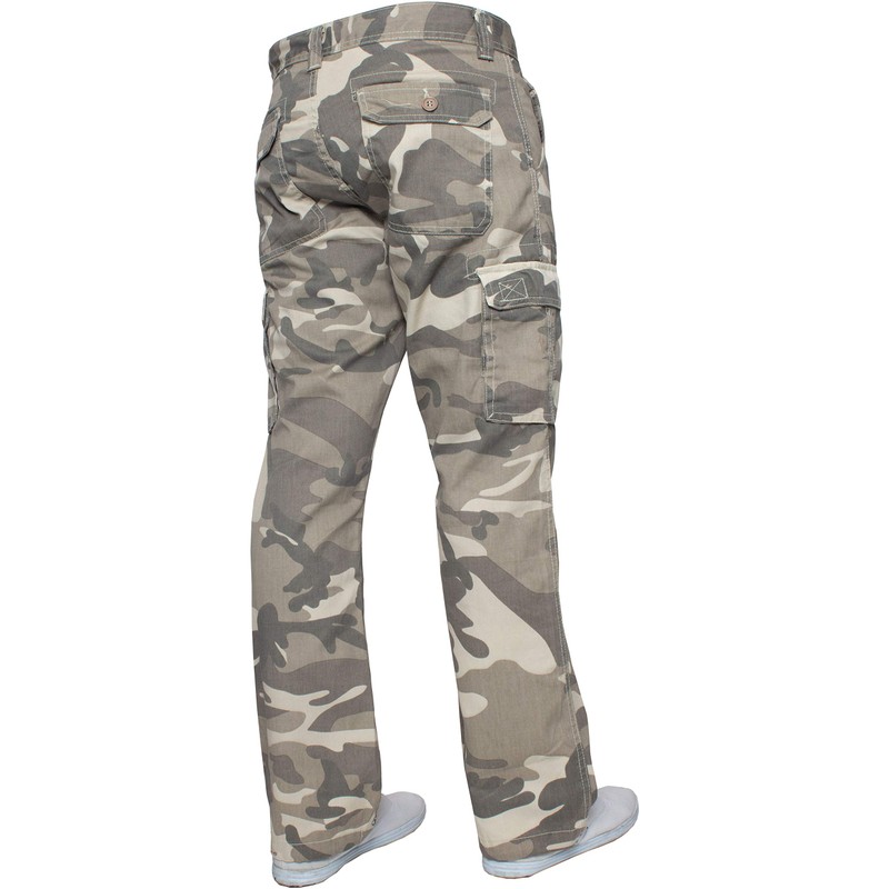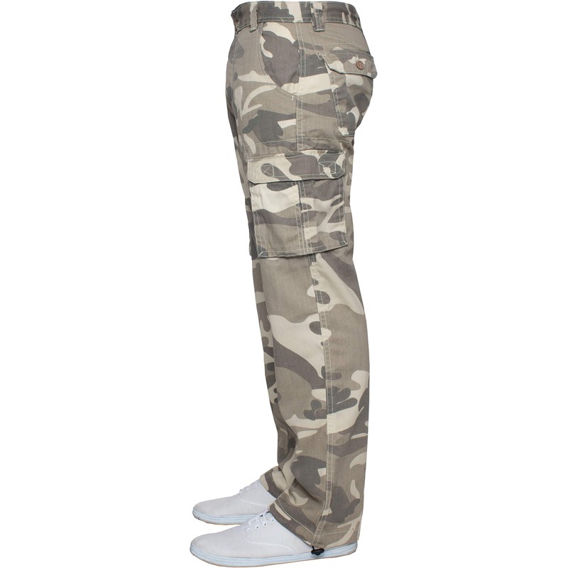 Kruze Mens Combat Cargo Trousers Camouflage Green Camo Summer Pants All Waist (32W / 30L, Beige)
