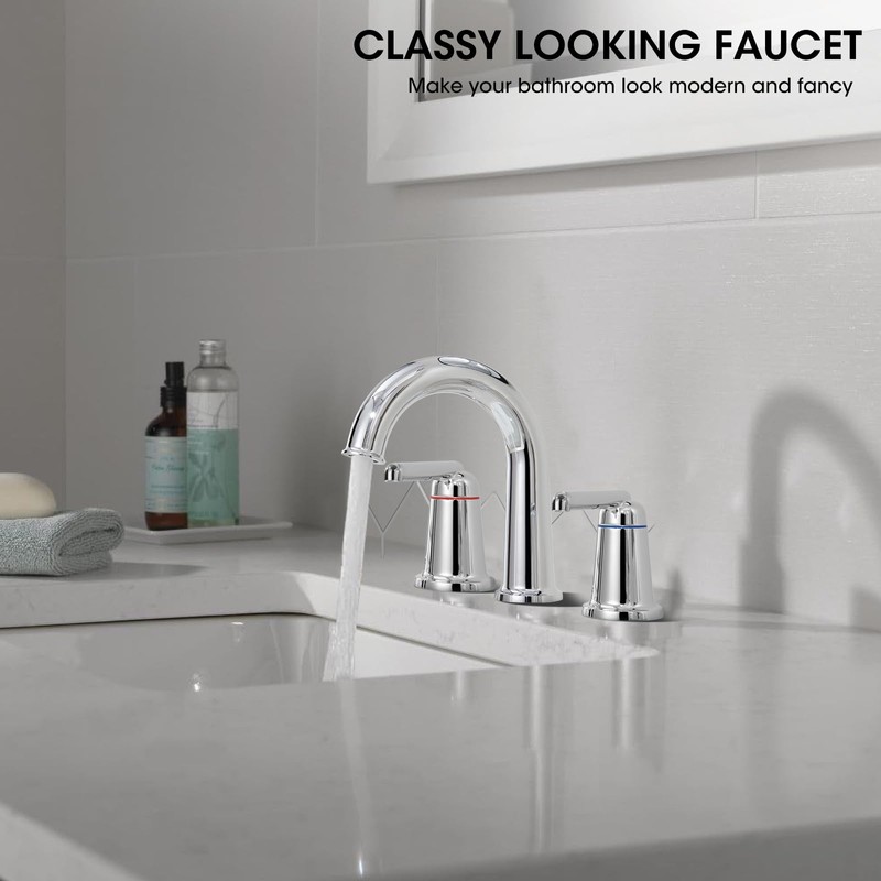 - 【MODERN BATHROOM FAUCET FOR ANY DECORATING STYLE】 Bathroom water faucet passed 24h acid salt spray test, effectively resists corrosion and rust for a fresh new look. Utility remodel wide spread bathroom faucet 3 hole will undoubtedly match your polished chrome/ silver bathroom accessories in your bathroom vanity with sink, RV sink, pedestal sink, powder room, travel trailer, camper, laundry room, farmhouse, restroom, rental houses.