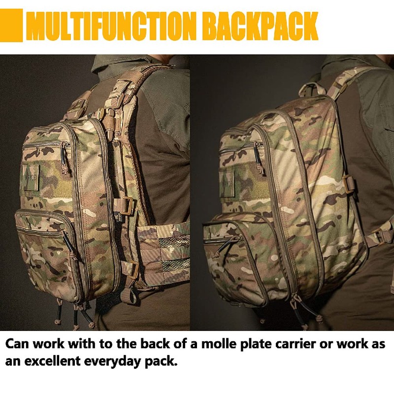 - Shoulder straps and chest straps are adjustable to make the backpack fit you well,also it can work with specifc chest rig,replacing the harness with the pack straps, creating rig with backpack.
