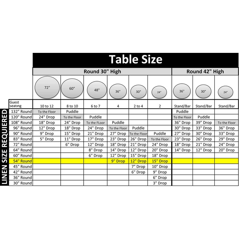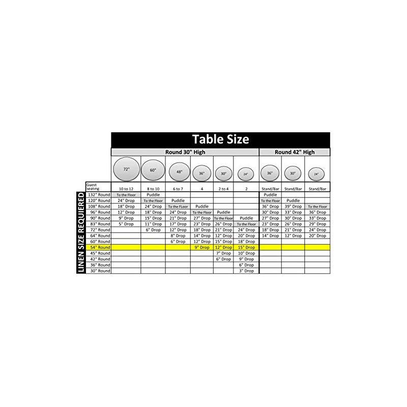Measure 54" diameter approx.. 100% Polyester .Serged edges.Seamless, one-piece design.Stain & wrinkle resistant, machine washable