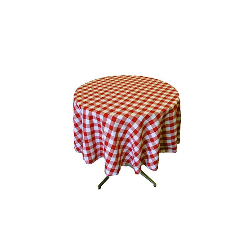 KS Linens Tablecloth Round 54" Checkered Perfect for Restaurant, Coffee Table, Overlay (Red - White)