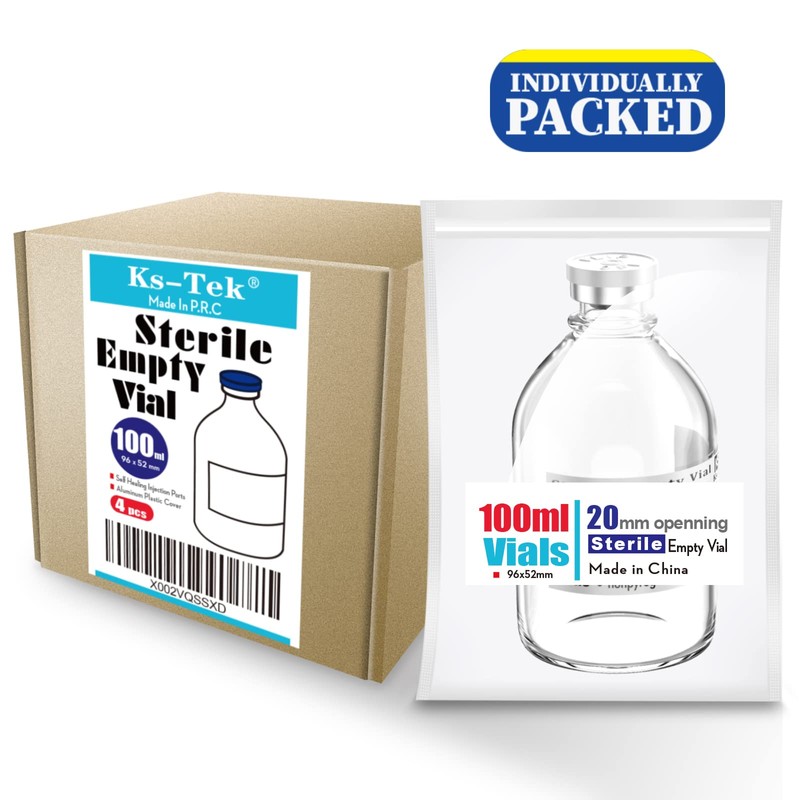 Ks-Tek Sterile Empty Vials with Self Healing Injection Port,with Flip Off Aluminum Cap,Sterile Package (100ml,4)