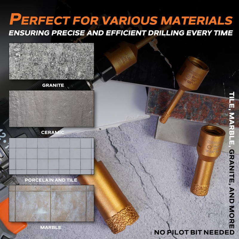 - Versatile Use: Whether it's porcelain, ceramic, granite, brick, or marble, our drill bit provides a seamless drilling experience. Its 5/8"-11 thread compatibility with angle grinders enhances versatility ensuring minimal wear.