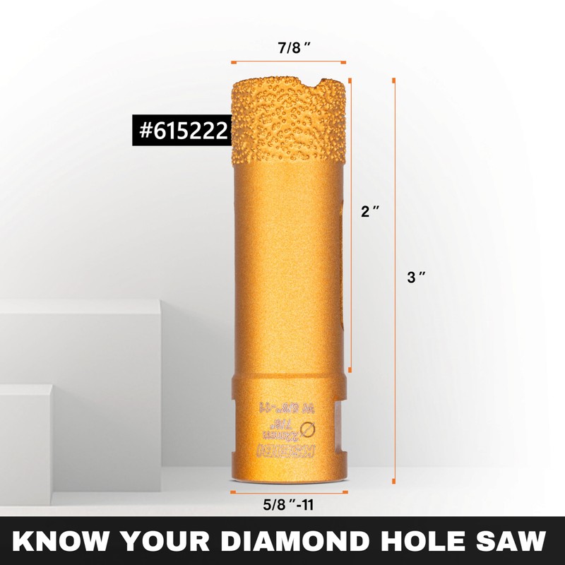 - Optimal Dimensions: The diamond core bit comes with a diameter of 7/8 inch (22mm) and a drilling depth of 2 inches. This granite hole saw is designed for drilling through granite, bricks, and more.