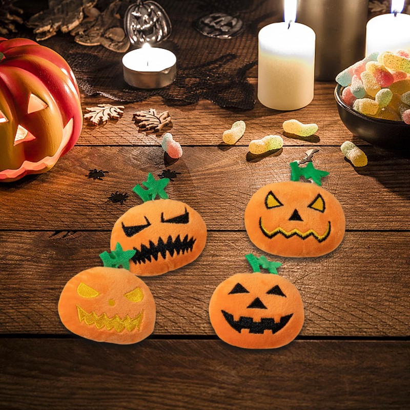 Ksheria 4 PCS Halloween Pumpkin Plush Toy, Halloween Squeaky Toy for Dog Cat, Pumpkin Shaped Pet Sound Toy, Pumpkin Squeaky Dog Toy, Cute Halloween Pumpkin Dolls
